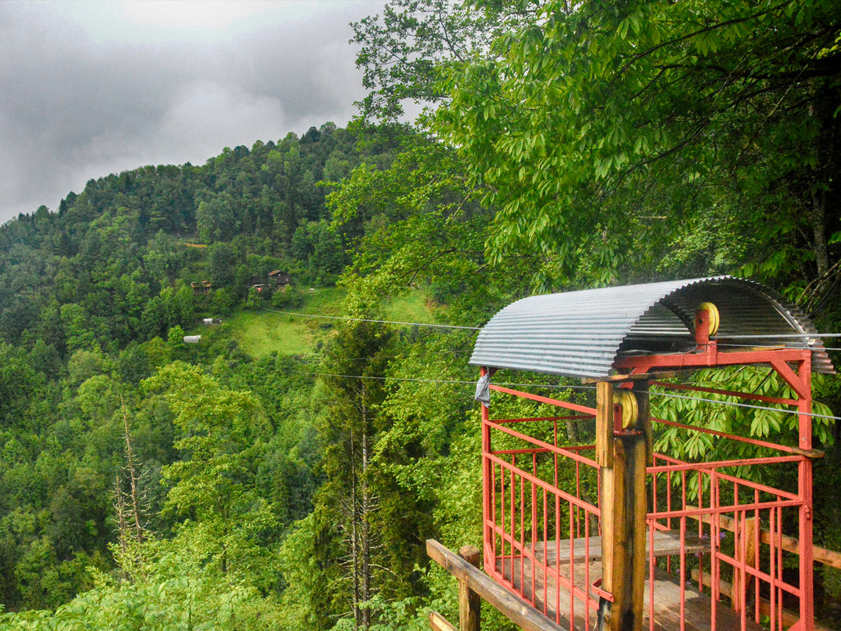 Bu sistem Doğu Karadenizde bilinen yük teleferiklerinin aksine tamamen insan taşıma amaçlı planlanmıştır. Yapım aşamasında bağlantı ayakları için 60 ton C30 beton kullanılmış ve granit kayalarla desteklenmiştir.Taşıyıcı halat çelik özlü olup taşıma kuvveti 12 tondur.Sistem taşıma kapasitesinin 2 katı ile test edilmiş ve hizmete açılmıştır.